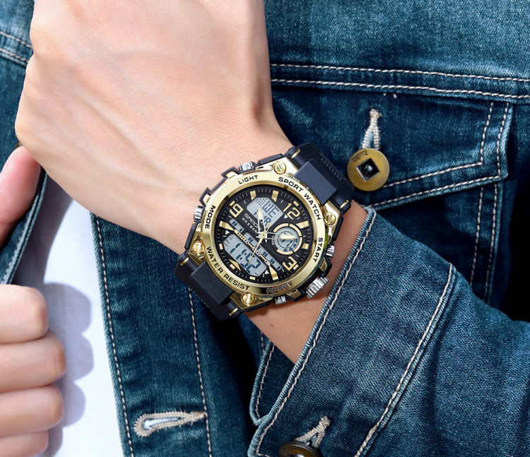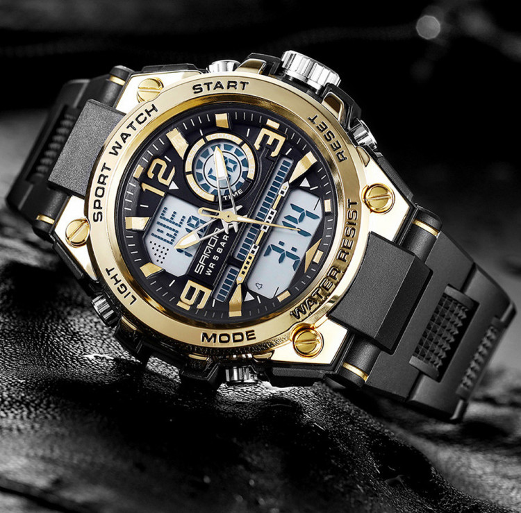 Чоловічий годинник SANDA black+gold є розкішним придбанням і є не тільки інструментом для визначення часу, а й чудовим стильним аксесуаром.