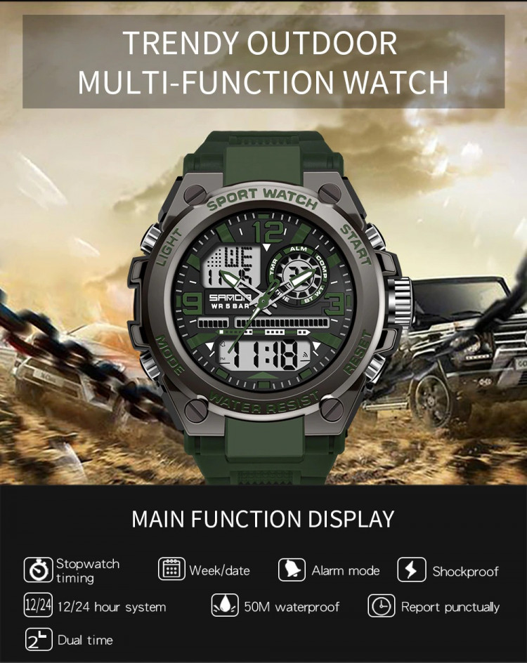 Чоловічий годинник SANDA Army green є розкішним придбанням і є не тільки інструментом для визначення часу, а й чудовим стильним аксесуаром.
