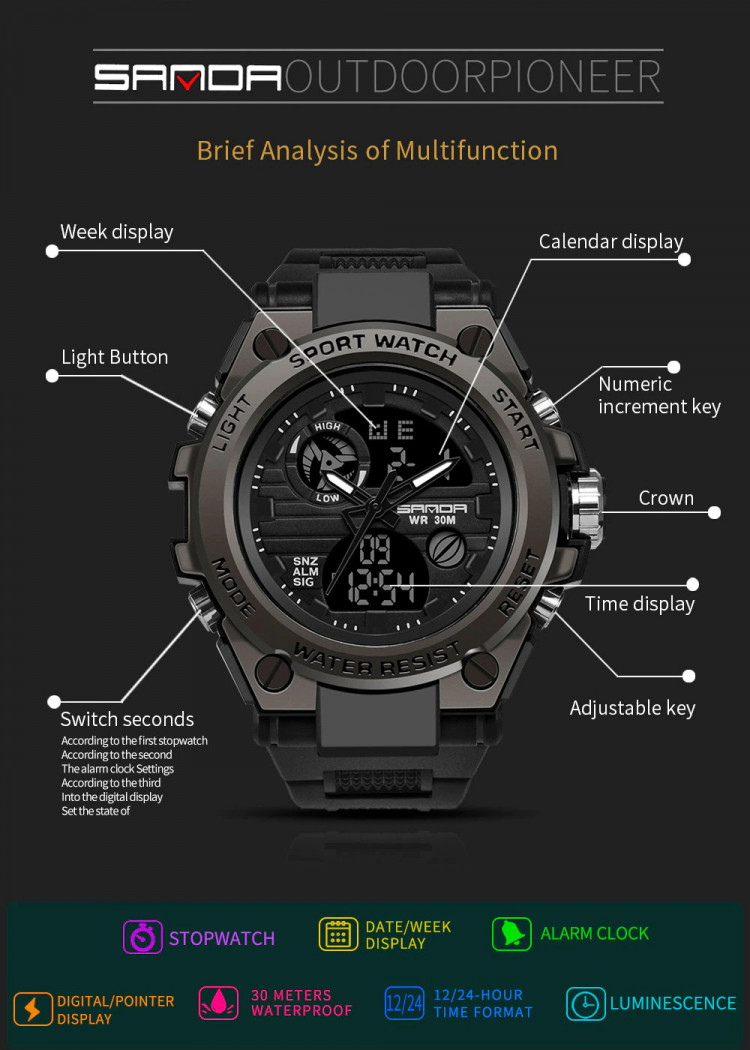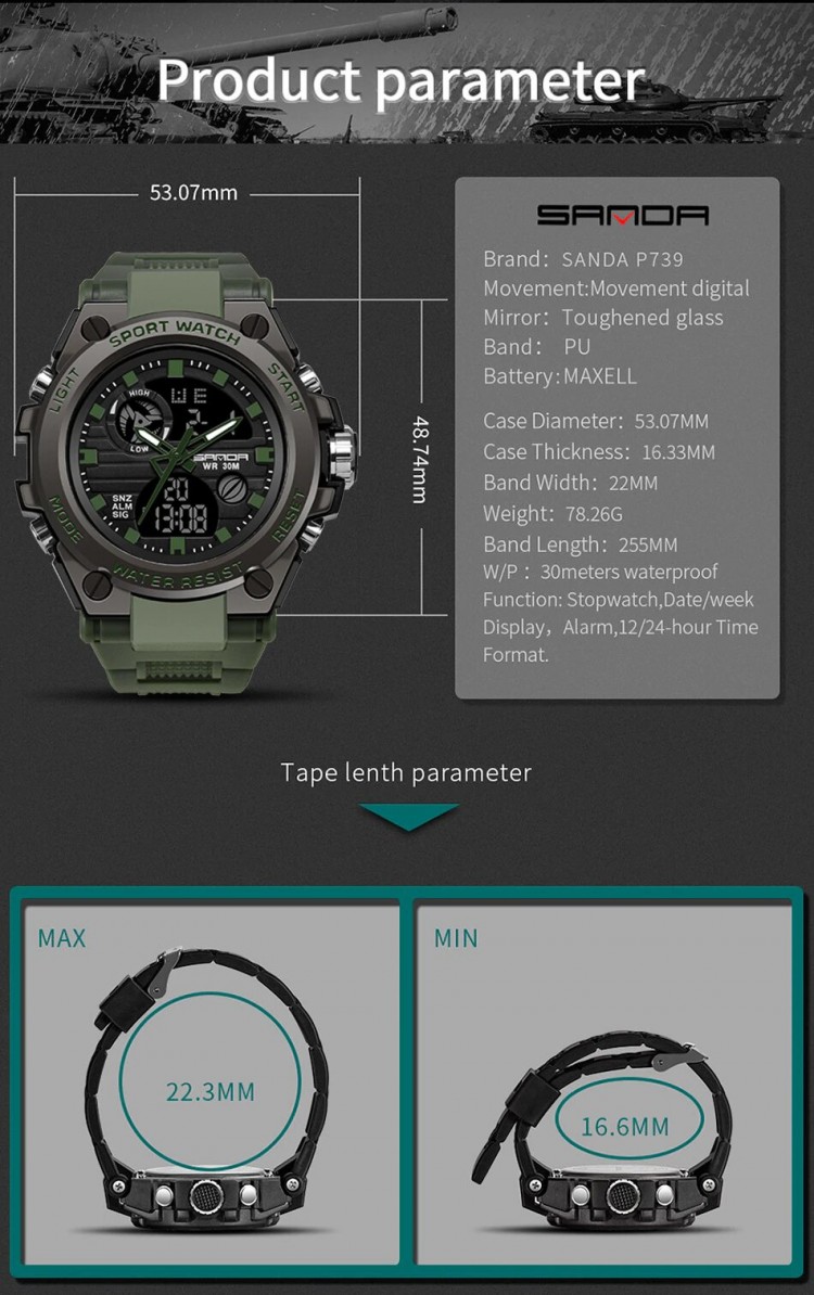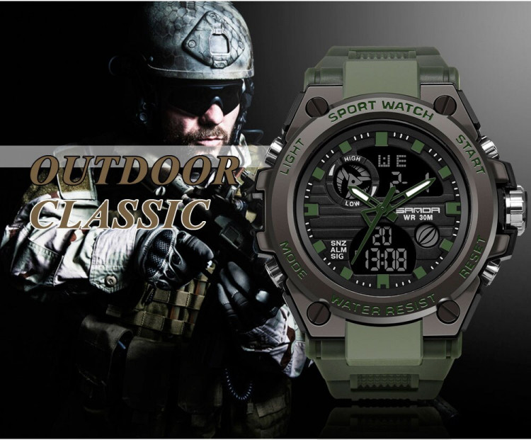 Чоловічий годинник SANDA Army green є розкішним придбанням і є не тільки інструментом для визначення часу, а й чудовим стильним аксесуаром.