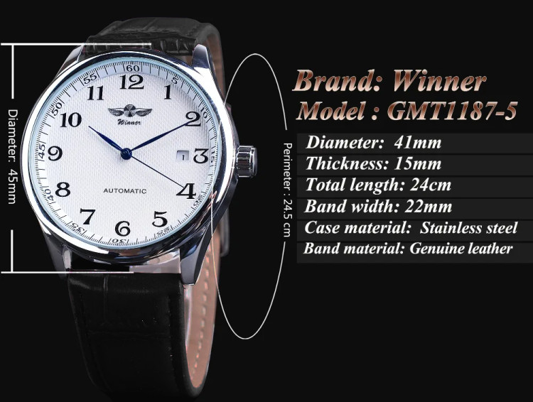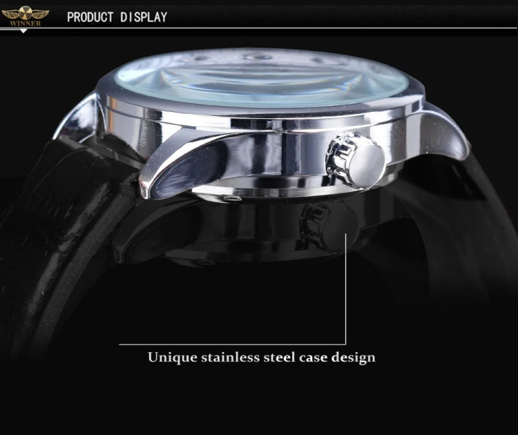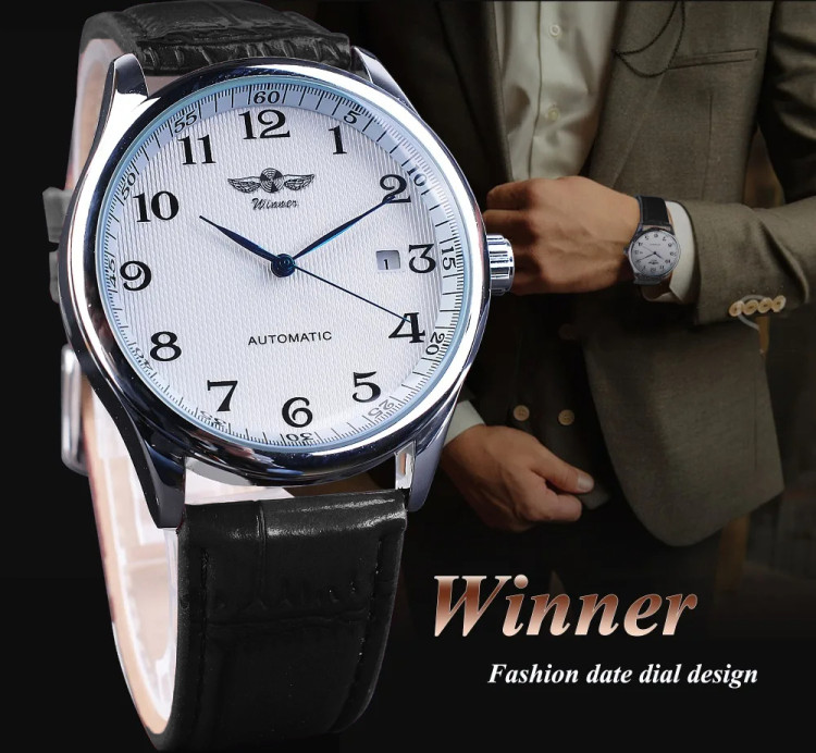 Чоловічий годинник механічний WINNER white шкіряний ремінець є розкішним придбанням і є не тільки інструментом для визначення часу, а й чудовим стильним аксесуаром.