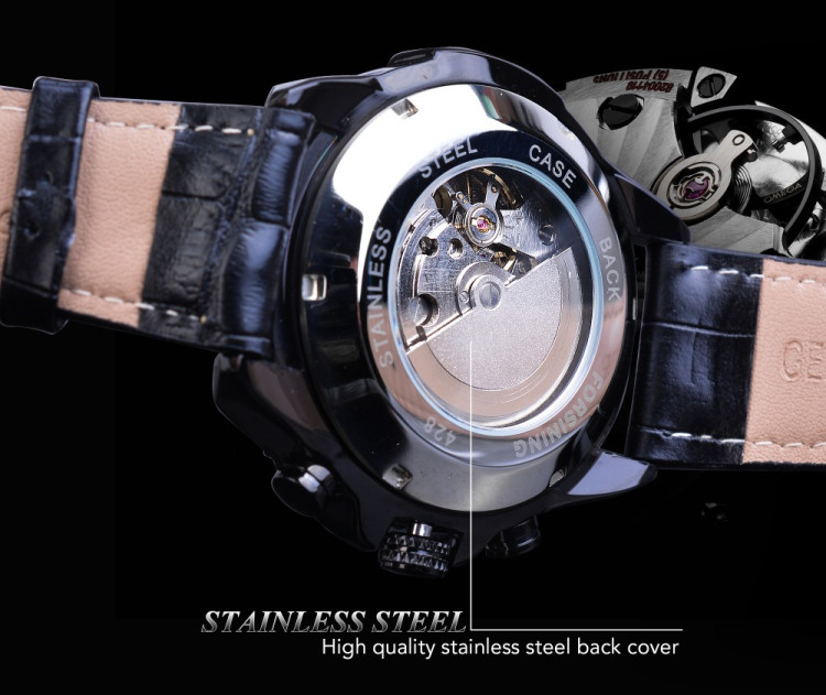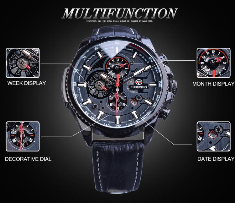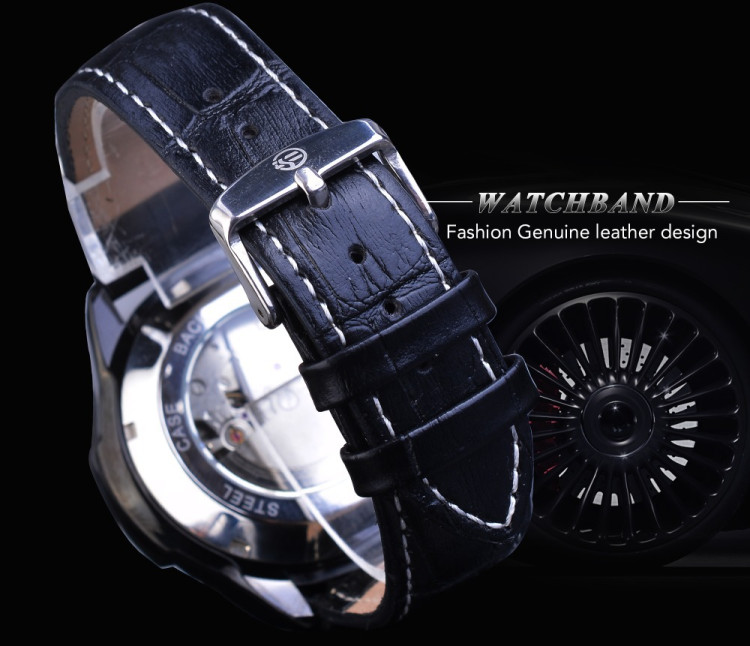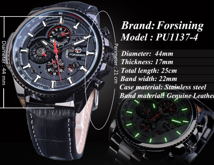 Чоловічий годинник механічний Forsining шкіряний ремінець відрізняються надійністю кожного з елементів. Матеріал якісний на дотик, надає впевненості та створює почуття комфорту протягом усього часу його експлуатації.
