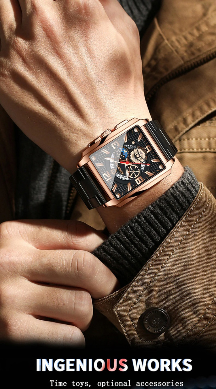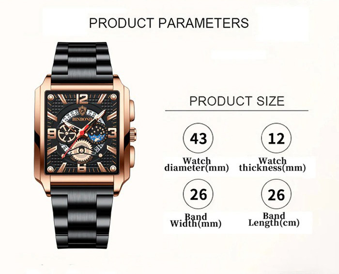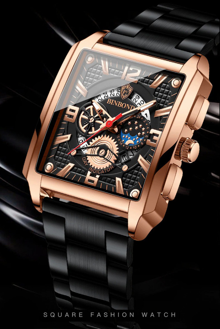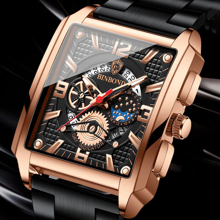 Чоловічий годинник BINBOND black+gold є розкішним придбанням і є не тільки інструментом для визначення часу, а й чудовим стильним аксесуаром.