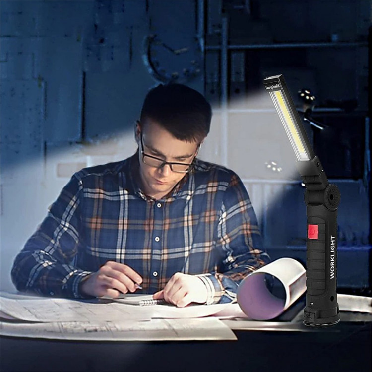 Портативна LED лампа-ліхтар Worklight - це багатофункціональний помічник з акумулятором та зярядкой від USB, магнітом і гачком, що має 5 режимів підсвічування:
