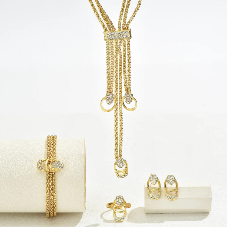 Коли створювали Комплект біжутерії позолочений з кристалами №137-05, дизайнери врахували всі сучасні тренди, а також класичні та перевірені часом елементи дизайну.