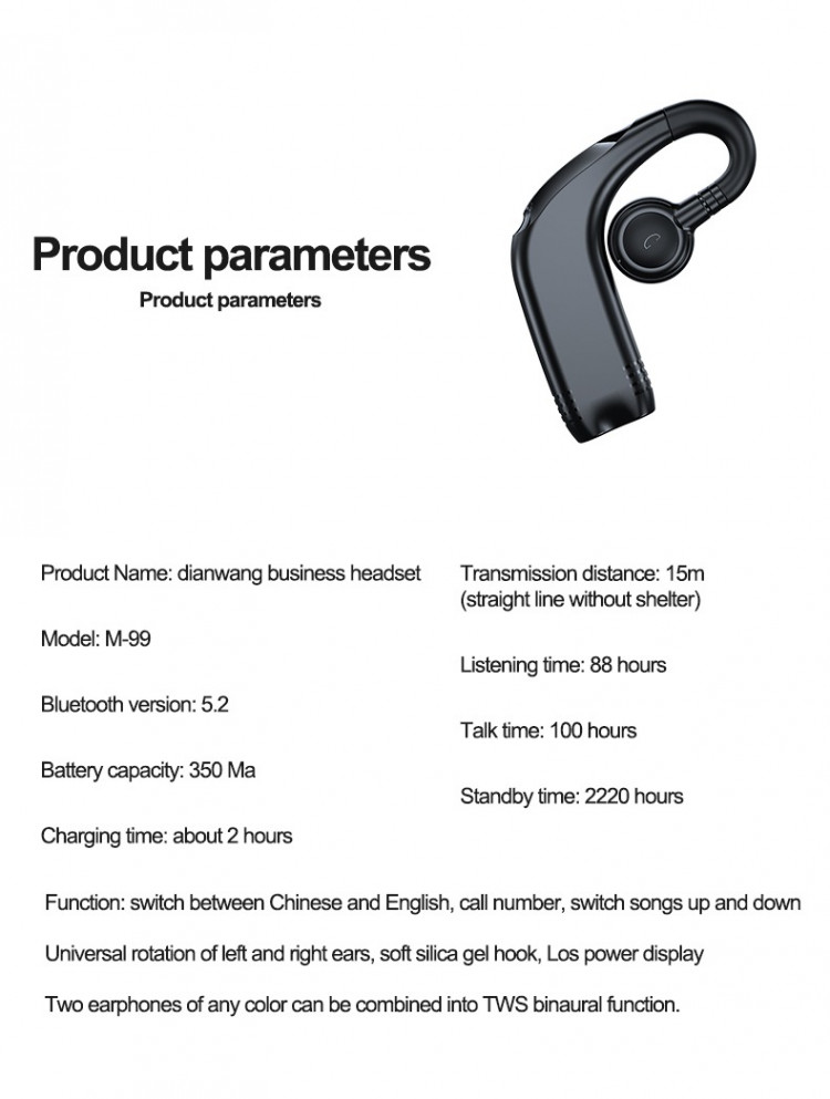 • Комплектація: гарнітура, USB-кабель (для зарядки), коробочка.