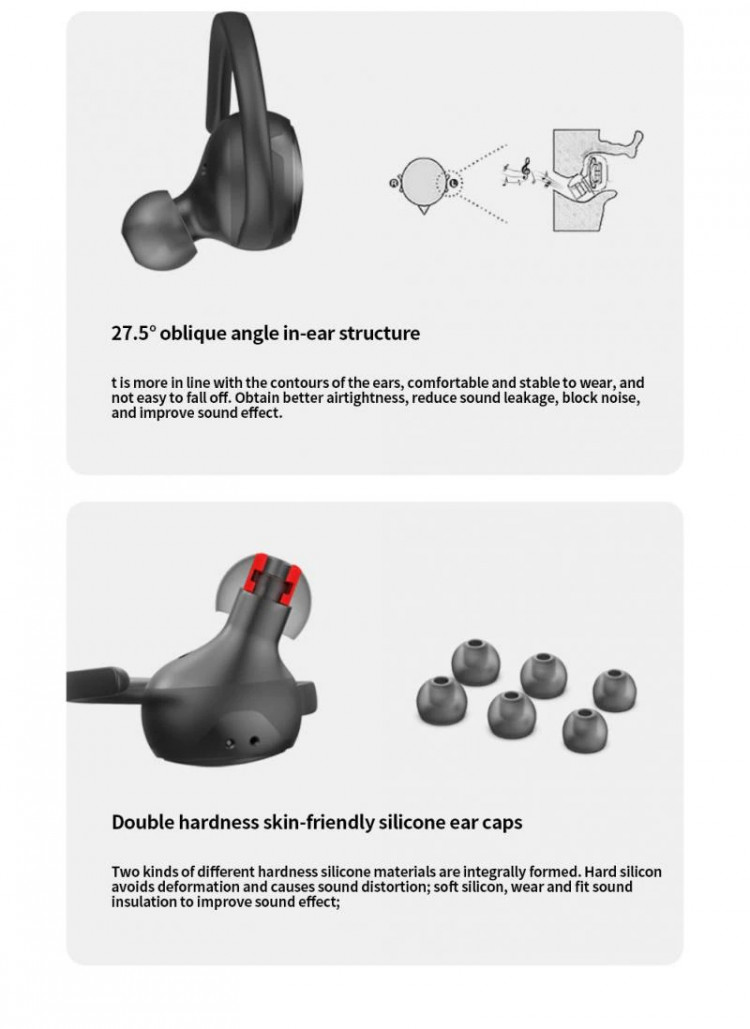 • Комплектація: навушники, зарядний кейс, 2 змінні амбушури різного розміру, USB Type-C-кабель (для зарядки).
