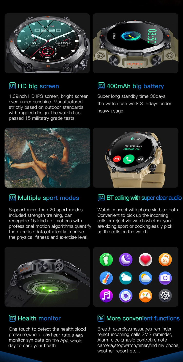 • 24 спортивних режимів таких як ходьба, біг, велосипед, плавання, баскетбол, бадмінтон, настільний теніс та інші!