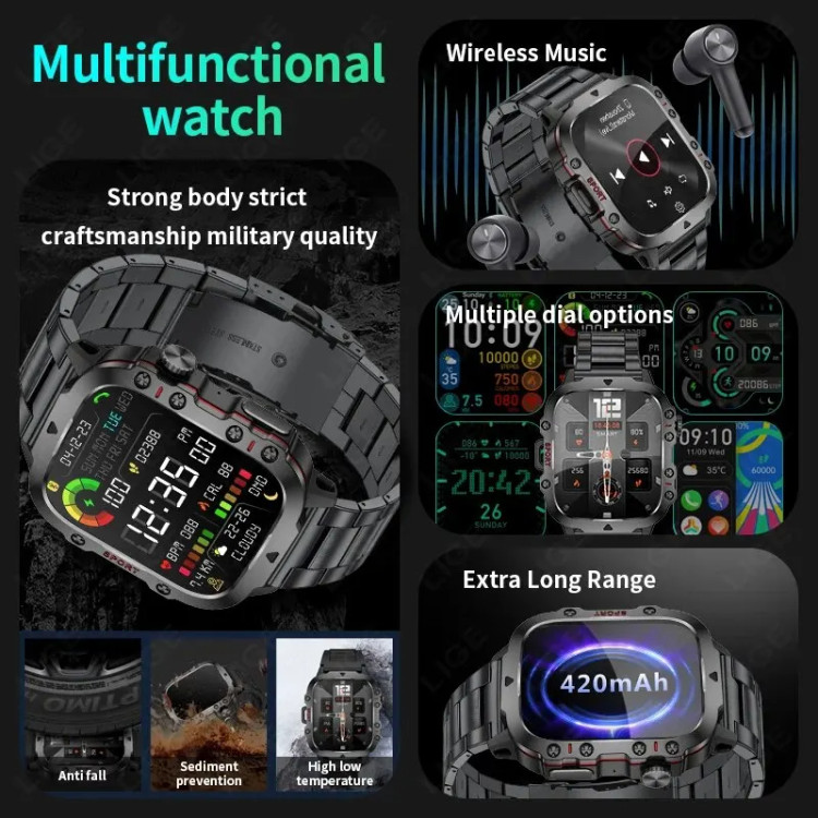 • Комплектація: годинник, два ремінці: сталевий та силіконовий (чорного кольору), магнітний кабель, коробка, інструкція.