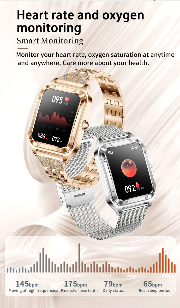 • Комплектація: годинник, два ремінці: сталевий та силіконовий (кремового кольору), магнітний кабель, коробка, інструкція.
