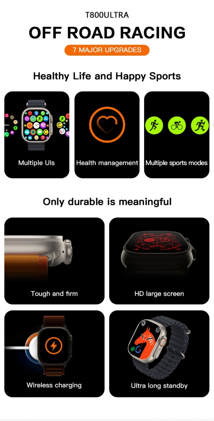 • Комплектація: годинник, два ремінці: силіконовий та нейлоновий (помаранчевого кольору), зарядний кабель, коробка, інструкція.
