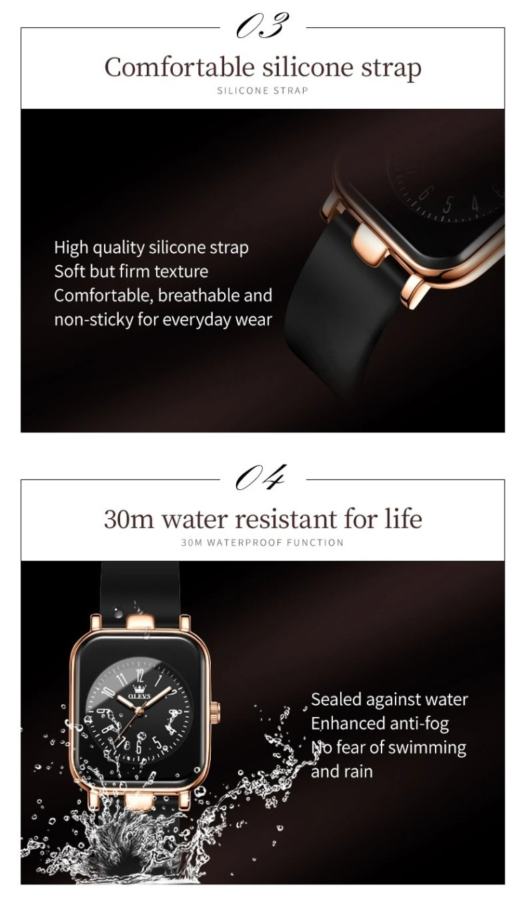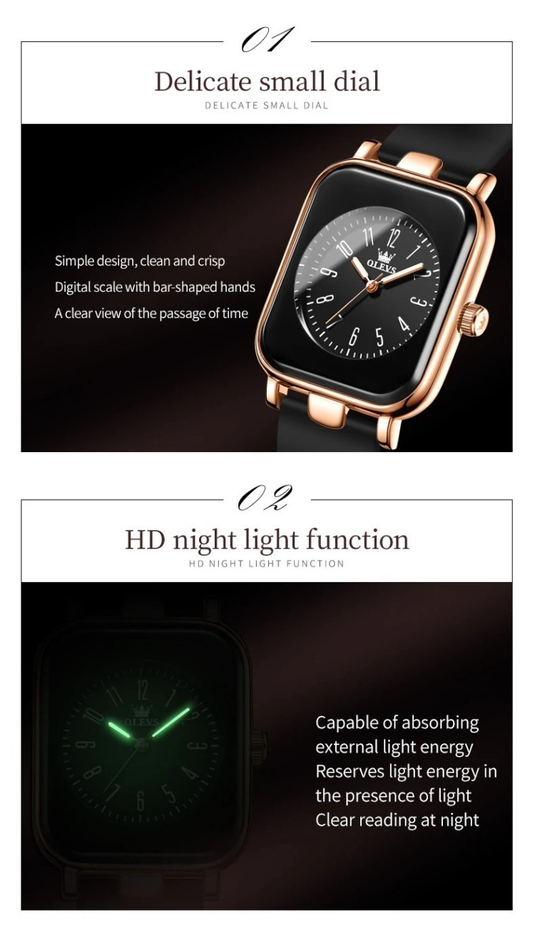 Жіночий годинник OLEVS gold + black відрізняються надійністю кожного з елементів. Матеріал якісний на дотик, надає впевненості та створює почуття комфорту протягом усього часу його експлуатації.