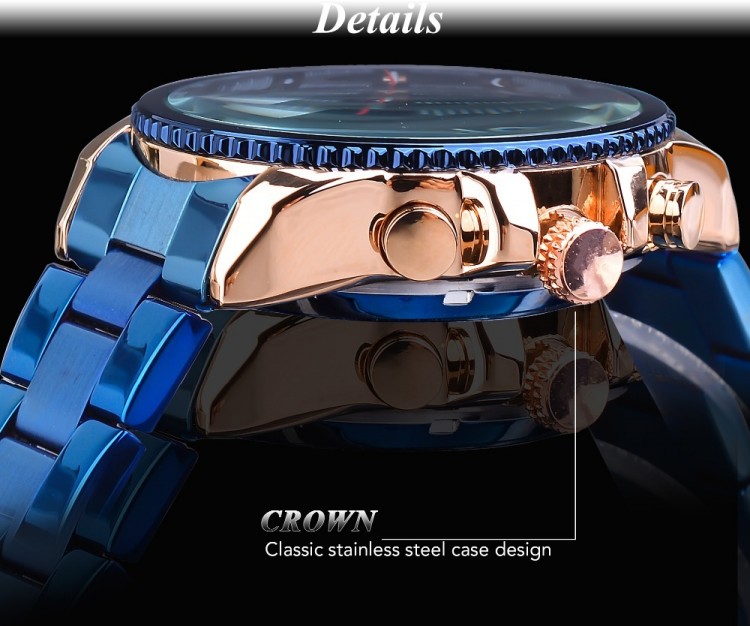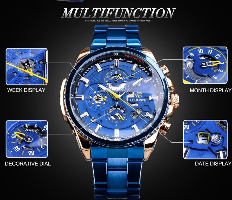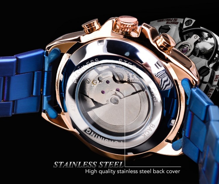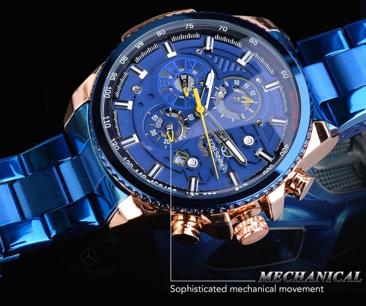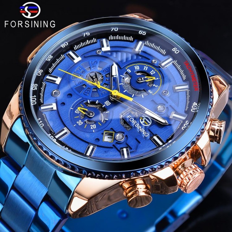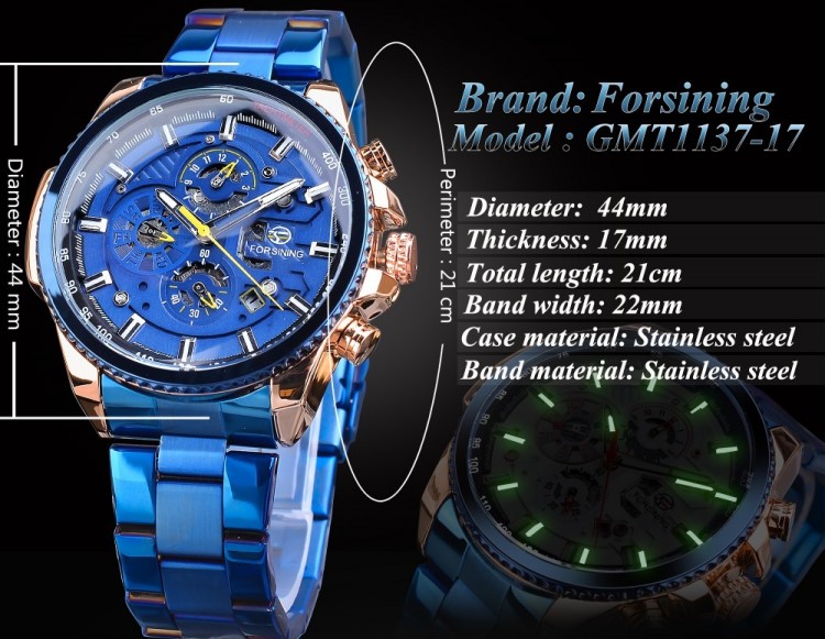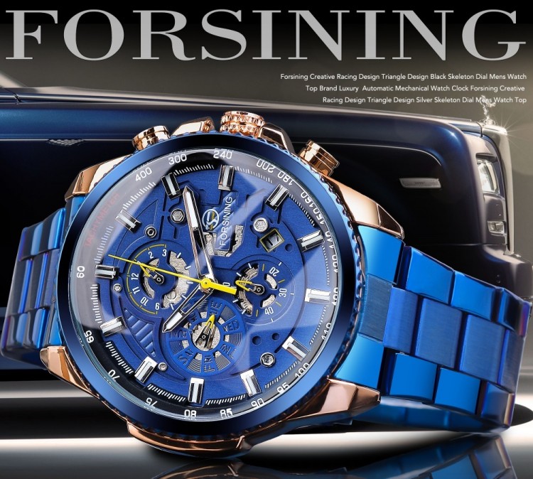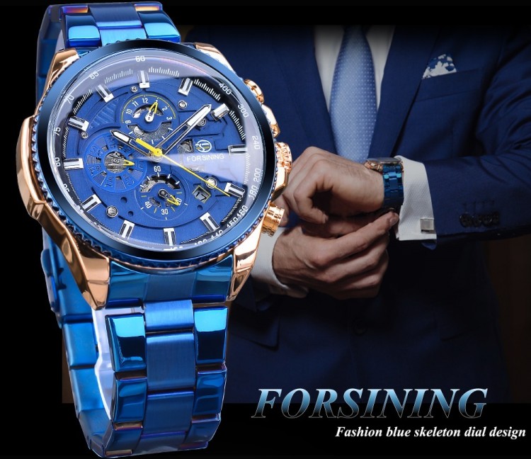 Чоловічий годинник механічний Forsining gold+blue є розкішним придбанням і є не тільки інструментом для визначення часу, а й чудовим стильним аксесуаром.