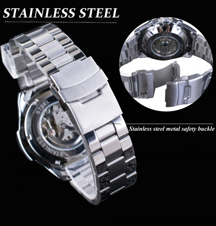 Чоловічий годинник механічний WINNER silver відрізняються надійністю кожного з елементів. Матеріал якісний на дотик, надає впевненості та створює почуття комфорту протягом усього часу його експлуатації.