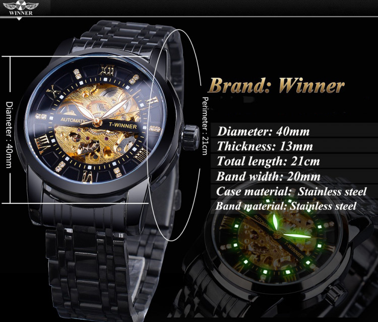 Чоловічий годинник механічний WINNER black є розкішним придбанням і є не тільки інструментом для визначення часу, а й чудовим стильним аксесуаром.