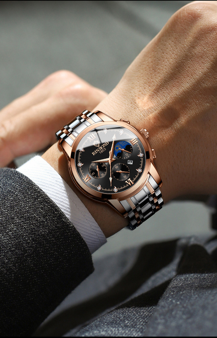 Чоловічий годинник BINBOND silver+gold є розкішним придбанням і є не тільки інструментом для визначення часу, а й чудовим стильним аксесуаром.